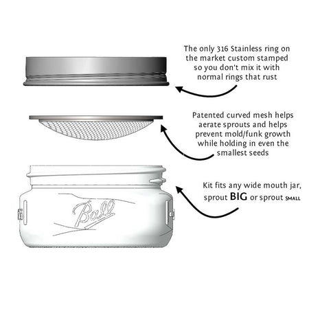 - 4 stainless steel sprouting lids with 316 stainless rings