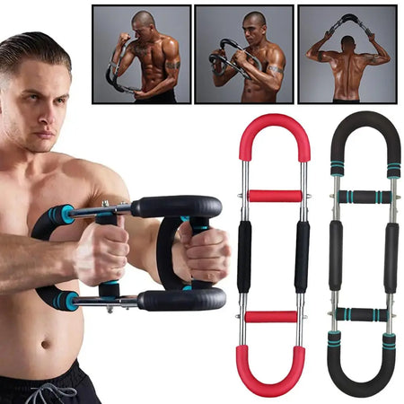 Build upper-body strength anywhere with this adjustable U-shaped steel arm exerciser. Compact and sturdy, it targets the chest, shoulders, forearms, biceps, and thighs with customizable spring resistance for efficient home or travel workouts.