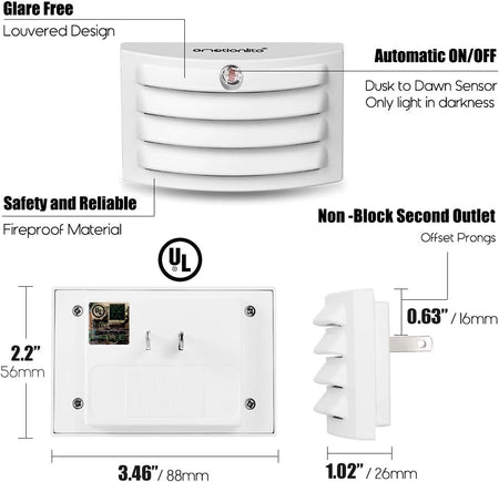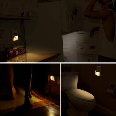 Compact, glare-free plug-in night lights that switch on automatically in low light. The warm 2700K glow guides nighttime movement without disturbing sleep, and the slim profile keeps your second outlet free. UL Listed and energy efficient for set-and-forget safety in any dark corner.