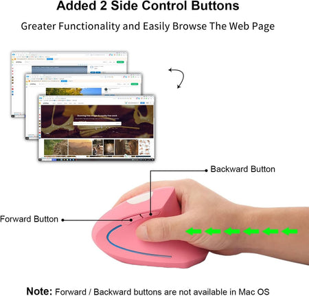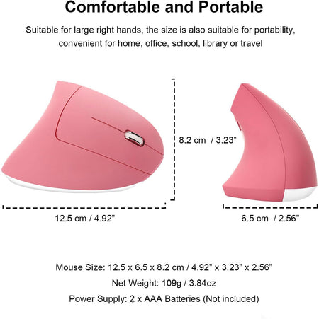 Ergonomic 2.4G Vertical Wireless Mouse, Pink