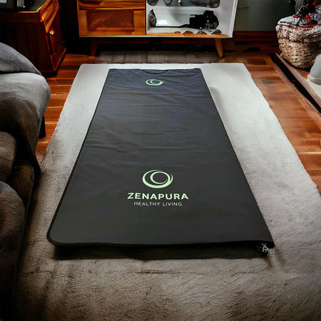 A portable far-infrared sauna blanket designed for relaxing, full-body heat at home. Adjustable settings, gemstone-enhanced heating zones, and a non-toxic PU leather exterior make it easy to use, clean, and store.