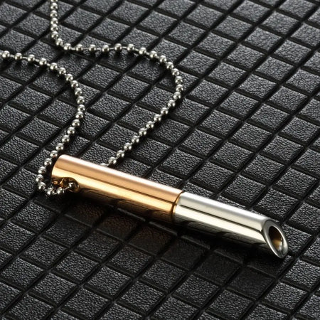 - 2 stainless steel breathing necklaces (chain + pendant)