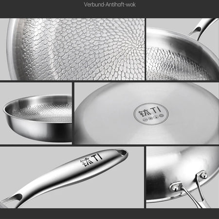 Cook confidently with an uncoated, hammered titanium frying pan designed for everyday use. Its fish-scale pattern supports physical nonstick performance when properly preheated, and it works across induction, gas, and electric ceramic stovetops.